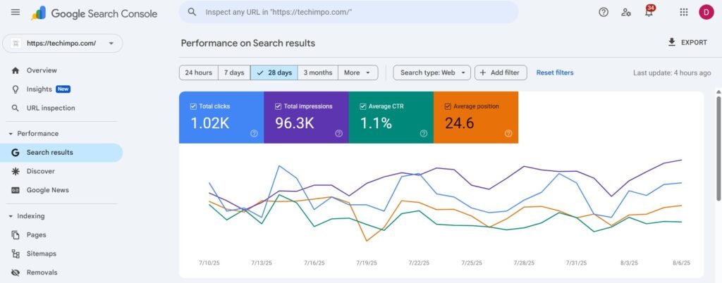 Below, we have provided Techimpo’s actual Google Analytics and Google Search Console reports. We try to update this page with new reports from time to time.